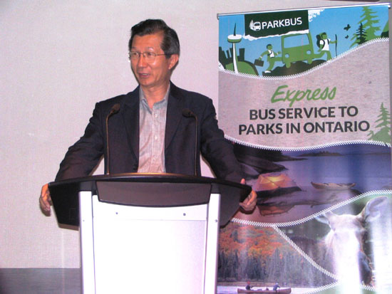 安省旅游、文化及体育部长陈国治在“公园巴士”2012首发式上发言