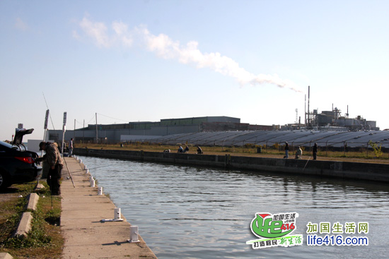 在Ganaraska River 的两岸,一些人正在钓三文鱼呢