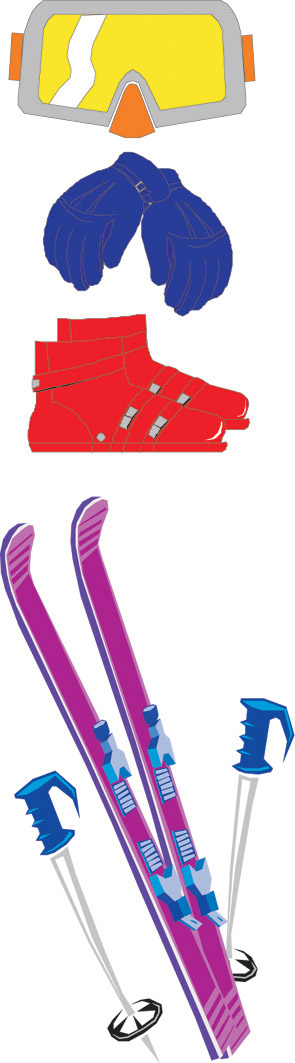 上衣要宽松,衣袖的长度应以向上伸直手臂后略长于手腕部为标准。袖口应为直立的高领开口,裤子的长度应当在蹲下后裤角到脚踝部长度为准。裤腿下开口应有双层结构,其中内层带有防滑橡胶的松紧收口,能紧紧地绷在滑雪靴上,外层内侧有耐磨的硬里。滑雪服的外料应选用耐磨、防撕、防风的布料、表面经防水处理的尼龙或防撕布最好。滑雪服的内层保暖材料应选用保暖性较好的中空棉或杜邦棉。颜色最好选择与白色形成较大反差的红、橙、黄、蓝等醒目色调。滑雪手套要宽大,要选择五指分开的,手套腕口要长,最好能将袖口罩住。滑雪帽最好选用套头式。