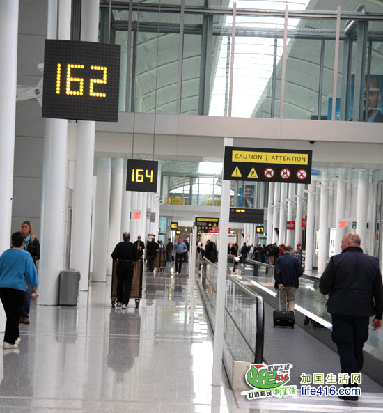 刚一进这个大房间,小编眼前一黑,只见眼前七拐八拐地排了一群人,全是排队等着过海关的。由于美国和加拿大的关系十分密切,所以美国海关在多伦多机场设置办事处,凡是去美国的乘客可直接在加拿大境内办理入境手续,这应该说是件好事,方便了加拿大和美国两地的民众。
