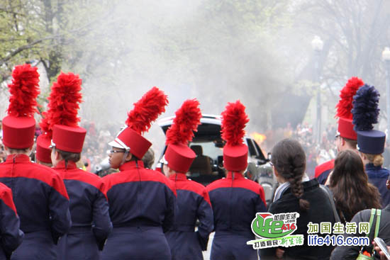【加国生活网专稿】2011华盛顿樱花节是在3月26日至4月10日举行的,其中4月9日和10日的活动是今年樱花节的Finale Events,最吸引人的当数华盛顿樱花节大游行(National Cherry Blossom Festival Parade)。这本来是件举城欢庆的大活动,然而活动中一辆牵引车的引挚突然发生大火,使游行被迫中断近半个小时。