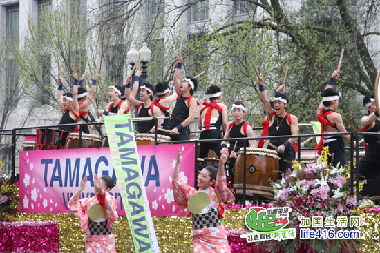 【加国生活网专稿】2011华盛顿樱花节是在3月26日至4月10日举行的,其中4月9日和10日的活动是今年樱花节的Finale Events,最吸引人的当数华盛顿樱花节大游行(National Cherry Blossom Festival Parade)。这本来是件举城欢庆的大活动,然而活动中一辆牵引车的引挚突然发生大火,使游行被迫中断近半个小时。