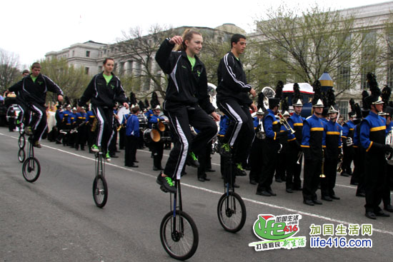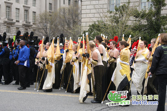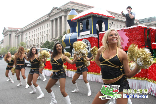 在这半个小时的时间里,其他人在干什么呢?小编告诉你啊,大家在自给自足地“娱乐”呢。这边的花车上,在歌手的演唱下,拉拉队热情洋溢的舞蹈一点也不会让人觉得闷。