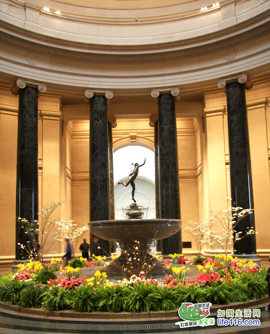 进入西馆大厅,大气的黑色柱子搭配精致的园艺和雕塑,让人眼前一亮。
