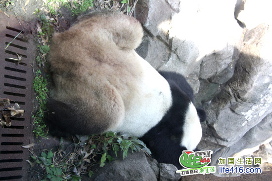 不过,小编参观动物园那天的运气不太好,怎么了呢?大熊猫那天不高兴哟,一公一母两只,一只趴在那里呼呼大睡,用屁股招呼小编;而另一只坐在那里吃东西,用后背招呼小编。