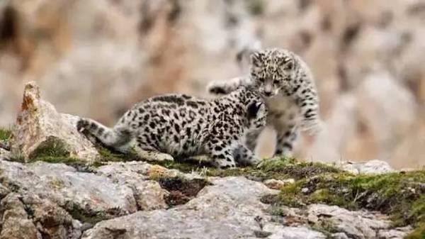 有一次雪豹外出打猎,他们冒着生命危险爬到它的窝附近,装好隐蔽摄像机,才拍到了两只可爱的雪豹娃娃。