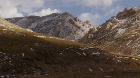 口蹄疫爆发,岩羊数量骤减,雪豹扩大了活动范围寻找食物,而摄影师也不得不四处奔走,发现它们的身影。