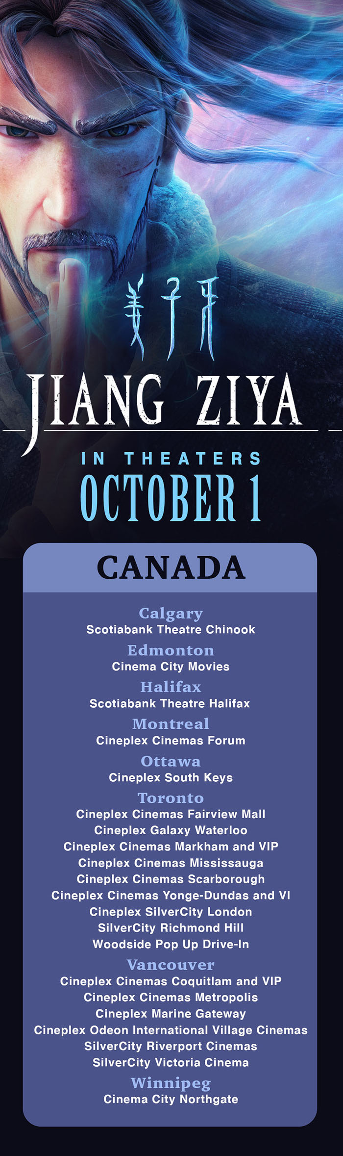 【加国生活网】加国生活网小编最新爆料:史诗级动画电影《姜子牙》将于2020年10月1日全球同步上映!也就是说,《姜子牙》将会在10月1日同步登陆加拿大各大城市电影院(见海报中电影院列表)!还有一个好消息就是10月1日《姜子牙》还会在安省的汽车电影院(Woodside Pop Up Drive-In)同步上映,大家不用担心疫情,开着自家车就可以放心地带着全家庆中秋看电影啦!