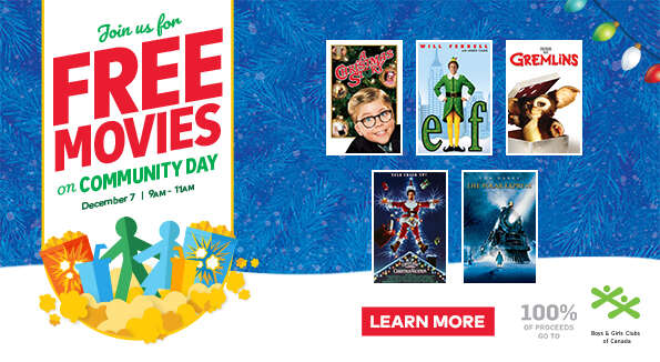 【加国生活网专稿】想看免费电影吗?为答谢社区,加拿大电影院Cineplex 将会在2019年12月7日举办全国范围的活动——Cineplex Community Day 2019。届时,全加拿大的Cineplex 电影院将会在星期六上午9点至11点放映免费电影,都是圣诞题材的电影,包括《圣诞故事》《圣诞精灵》《小魔怪》《疯狂圣诞假期》《极地特快》,全部都是老电影,当年的票房佳作!