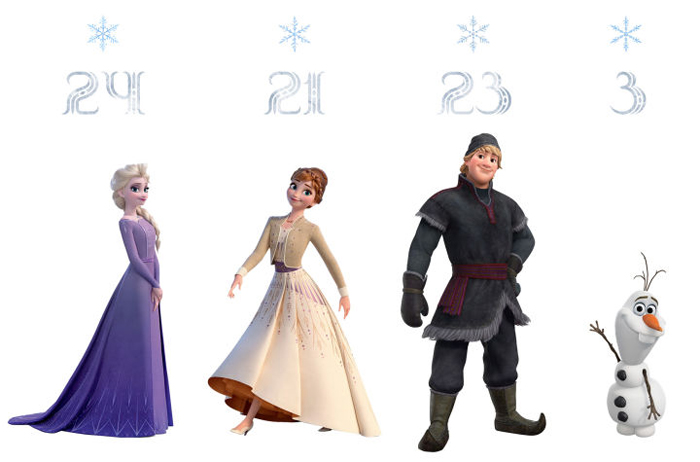 冰雪2的故事发生在冰雪1的三年后,Elsa是24岁,Anna21岁,阿克23岁,雪宝3岁。