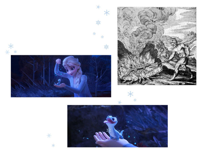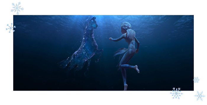水元素精灵Nokk的原型源自日耳曼神话,是一种可以变换成美丽的女人、俊俏的男人、挺拔的骏马等各种形态的水魂,吸引人类再将其骗入水中溺死,所以电影里也可以看到Nokk要把Elsa踩入海底。
