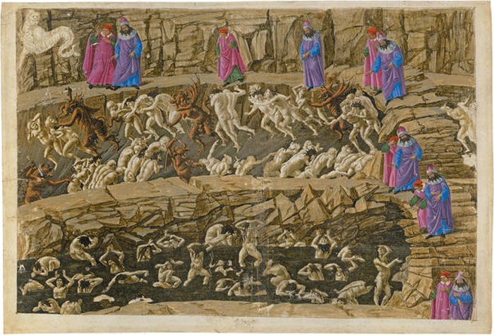 第二,《神曲》是“图像化思维”的顶峰之作。作者把自己幻想的游历过程在大脑中转化成图像,再用文字描写出来。这些图像的素材包括《圣经》故事、历代圣徒传说、真实的历史人物和古希腊罗马神话,构成了一部“视觉盛宴”。其中彰显的想像力让今天的人也大为惊讶。