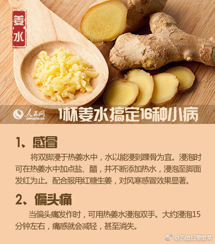 1杯热姜水搞定16种小病2