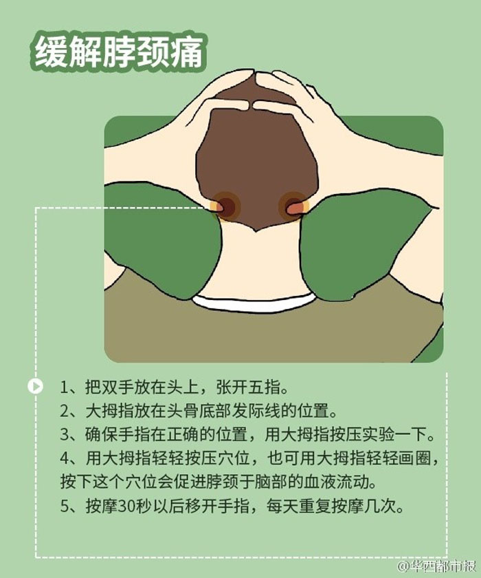 上班族和久坐族总会有脖颈痛、头痛、腰痛、背痛等状况,教你10个缓解的按摩手法!这些方法很适合缓解,且万一遇到突发状况也可以应急用哦!