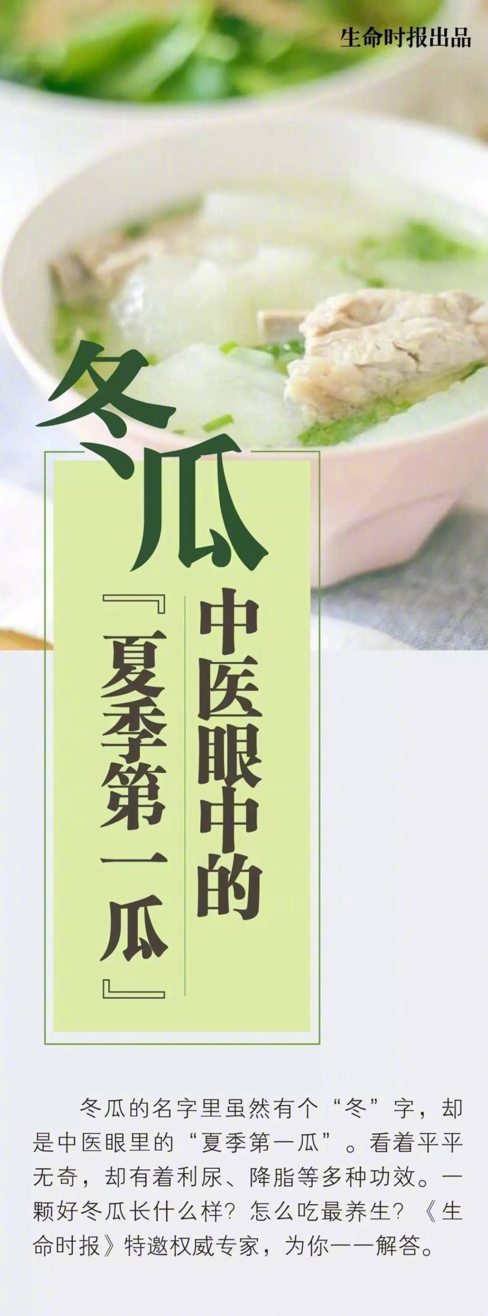 冬瓜的名字里虽然有个“冬”字,却是中医眼里的夏季第一瓜。看着平平无奇,却有着利尿、降脂等多种功效。一个好冬瓜长什么样?怎么吃最养生?《生命时报》特邀权威专家,为你一一解答。