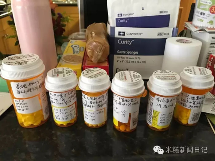 左肺切除4天后,妻子就回到公寓静养,这是医生开给她辅助治疗的药物。