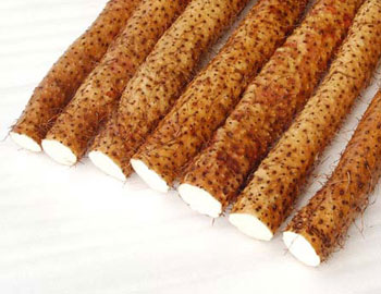 山药的模样貌不惊人,土褐色的外皮,外形呈较细的圆柱状,肉白而坚,咀嚼时口感微酸发粘。不过“药不可貌相”,山药对于调理生理能力、病后虚弱体质、妇女产后调养,小孩强健体魄都有显著效果,因而被称为“食物药”。
