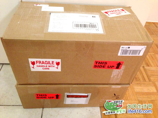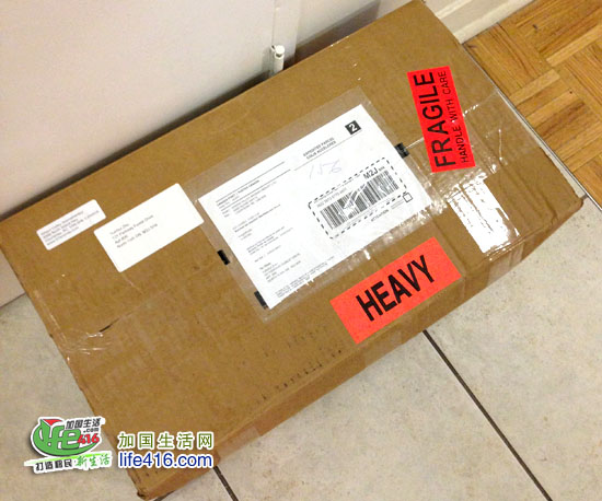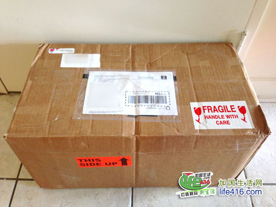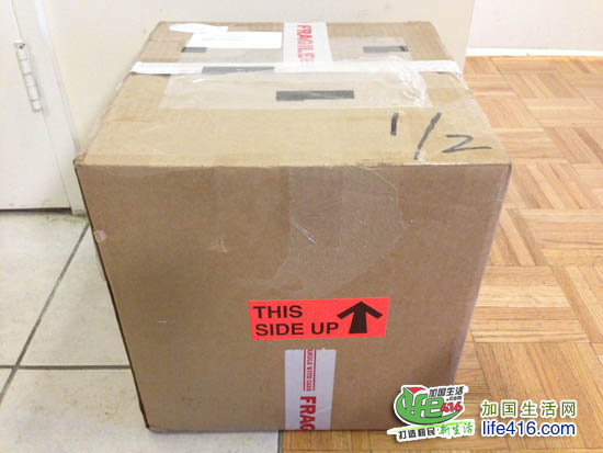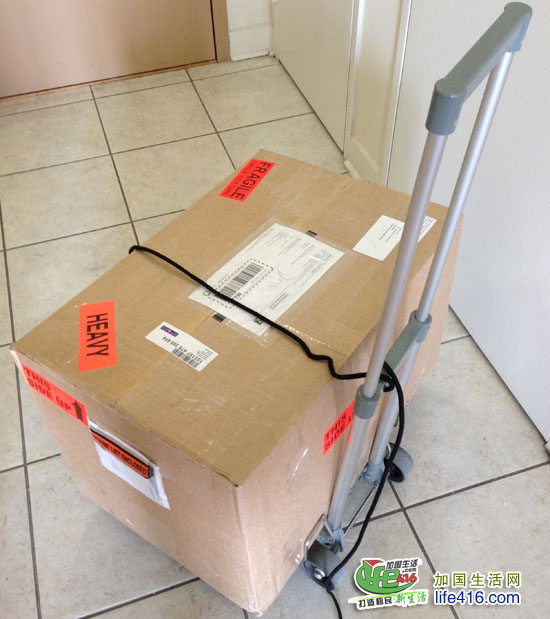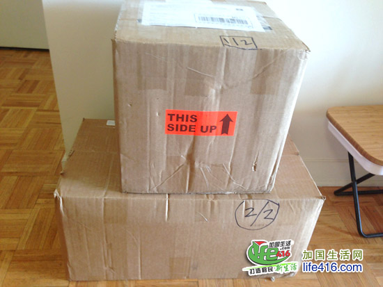 这次仍是个大重箱子,Canada Post 邮递员送上门的,没出啥意外。怕就怕他们不送上门,还得让我去邮局取。