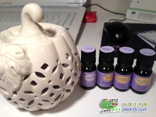 2013年1月16日最新消息:最近加拿大和美国爆发流感,大家可以考虑买些精油制作杀菌的空气清新剂。配方是:80ml纯净水+30滴纯精油,推荐精油:15滴茶树(强大的空气杀菌剂,呼吸道消炎)+10滴尤加利(缓解呼吸道各种症状:鼻塞、支气管炎、咳嗽、喉咙痛)+5滴甜橙(果香调和药味)。Green Valley 家的10ml的茶树精油$11.2、尤加利$9.8、甜橙$8.2,都不太贵。正好现在小编正在组强第二轮拼邮,感兴趣的朋友可以试试,时不时在家里喷喷,保护全家健康。注意:家里有孕妇的请不要购买。