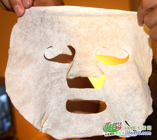 打开后是这个样子的,还带眼帘呢,除了脸部外,眼部也能敷上。这款面膜的形比较正,敷在脸上特别舒服。使用花水,一定要用面膜纸敷在脸上才有效果。