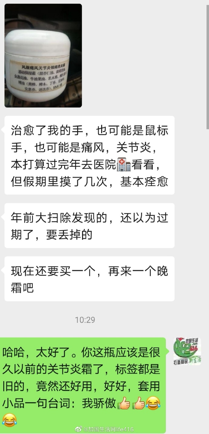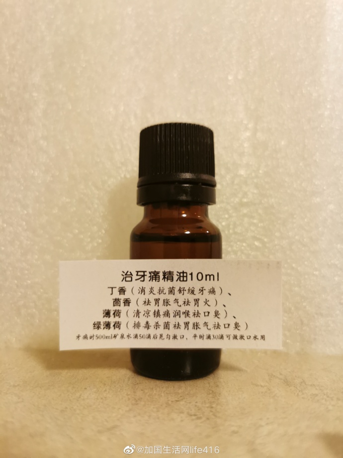 2021年1月20日:这日子过得太快了,眼一睁一闭半个月快过去了,有好多粉问小编拼邮咋还没开始?其实早就开始了,小编就是忙得没上来吼一声!现在赶紧吼吼:第67批拼邮开始了,欢迎加拿大和国内粉参加。取货时约在户外,一次就约一人,会酒精消毒并戴口罩,请大家放心。另外,有粉问最近嗓子不舒服肿么办?用牙疼精油做成漱口水漱口,见下图一,效果十分明显。疫情期间因为用量大,小编建议订全套精油,图二三那四个小瓶精油即是。再秀几张大家在前几批所订的精油,各种需求搭配各种组合,用于生活中的方方面面,提高生活质量哟。
