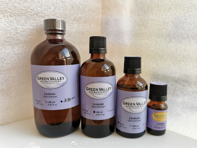 分别是10ml、50ml、100ml、250ml容量的柠檬精油(小编终于在这批齐集一整套不同容量的柠檬精油,可以召唤神龙了,哈哈,拍照!)