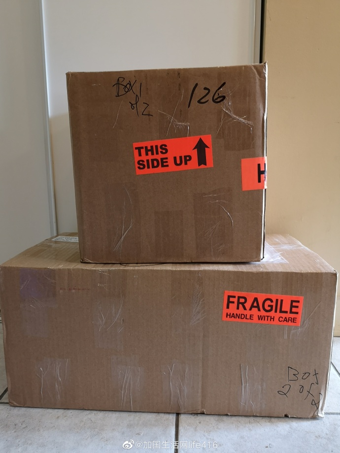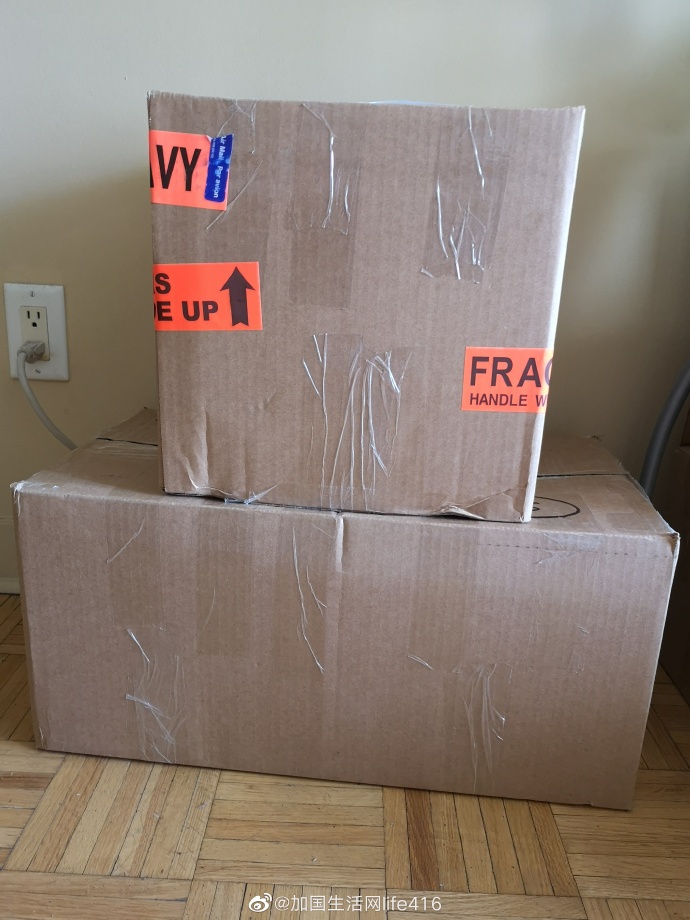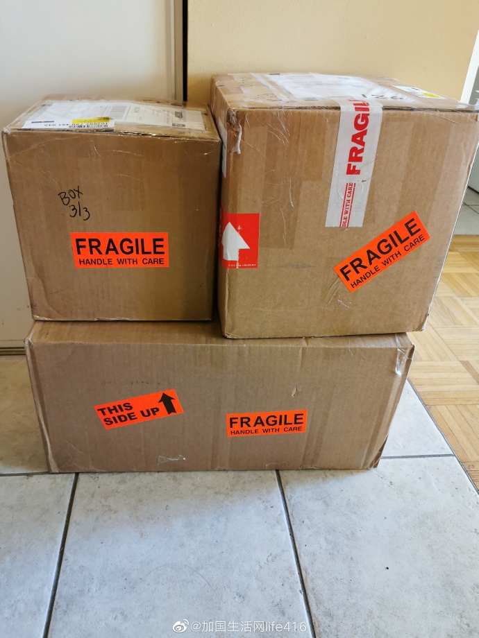 下着大雪,小编把这三个箱子从Canada Post扛回来的,容易吗?