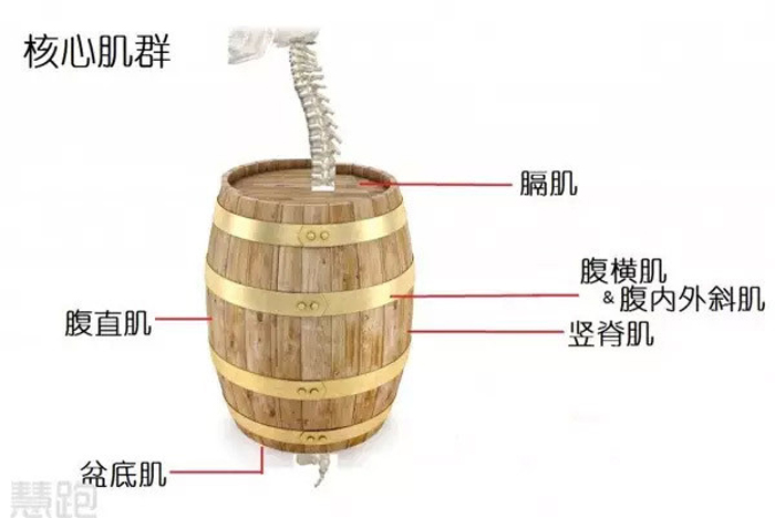 所谓身体核心肌群不仅包括躯干前方的腹直肌、腹横肌,还包括躯干两侧的腹内外斜肌、腰方肌以及躯干后方的竖脊肌、多裂肌等等,也就是说核心肌群分布在躯干前后左右以及上下。