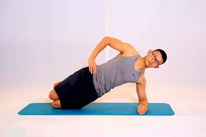 侧桥1级:跪姿侧桥支撑,目标1分钟