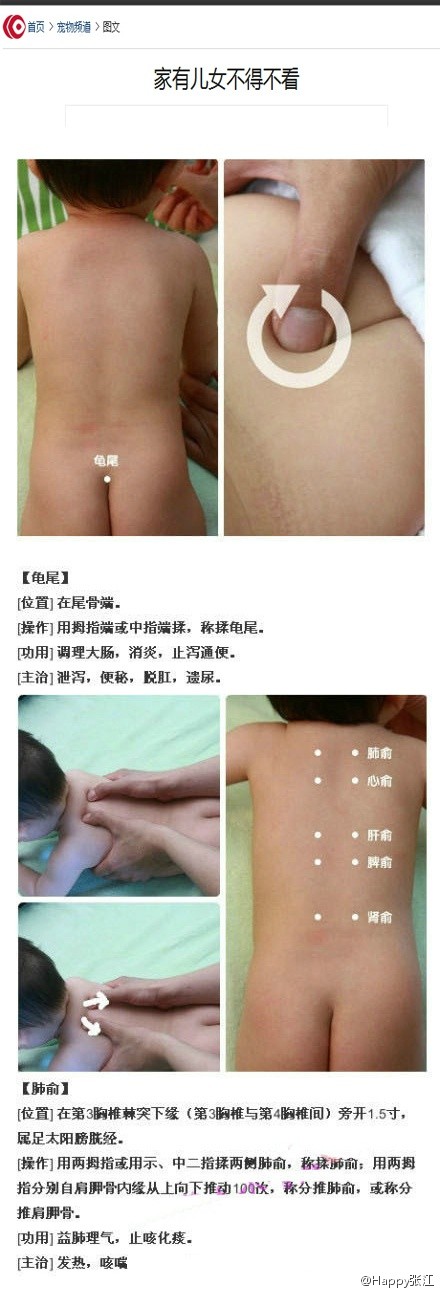 【加国生活网】(文字来源:新浪微博@happy张江)网友教你做史上最全的小孩推拿大全,为了宝宝,一起学起来吧~~很实用的宝宝推拿大全,夜啼、吐奶、退烧、增高、强体、腹泻、开胃等12个症状都能轻易解决哦!!!为了孩子,快学起来