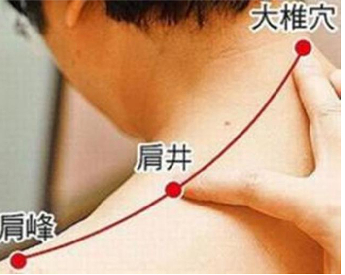 二是肩井穴。肩井穴是足少阳胆经的常用腧穴之一,位于大椎与肩峰端连线的中点上,前直对乳中。用力按压肩井穴,就会感到有十分舒服的压痛,肩背痛就会得到缓解。