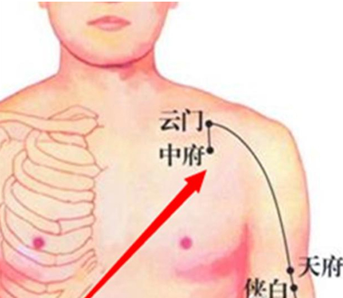 三是中府穴。中府穴是属手太阴肺经之脉,中府穴就在胸前壁的外上方,云门穴下1寸处即是本穴。