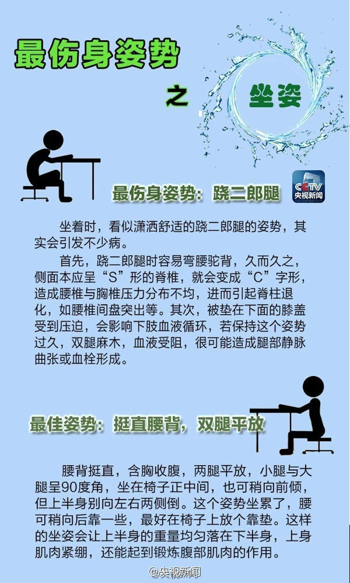 “站如松、坐如钟、行如风、卧如弓”,这是古人对站姿、坐姿、走姿、睡姿提出的严格要求。这些标准的姿态并不只代表好看,养成正确的姿势可以让你的身体更加健康!哪些不良姿势伤身体?应该如何纠正?快来学起来!