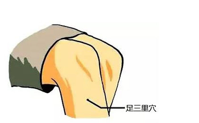 2、取坐姿,双腿稍微前伸,在膝关节“膝眼”往下三横指处,找准左右两腿的足三里穴,用双手大拇指用力按压、按摩此穴位,足三里古代文献中记载的“强壮穴”,对健身强体有特殊作用。