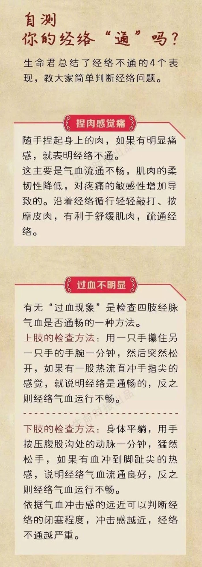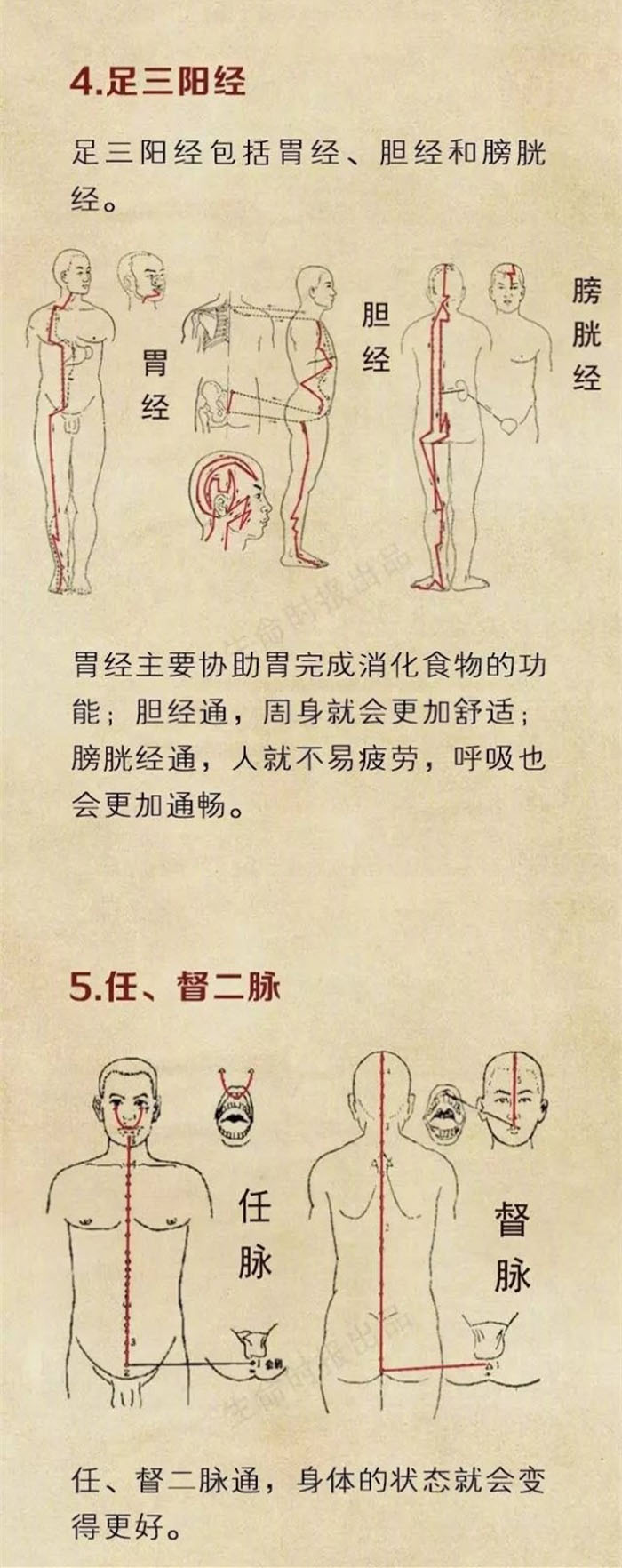 经络是连接人体五脏六腑的桥梁,也是维持人体能量和气血运行的“通道”,如果经络不畅,就可能出现各种病症。“通道”堵了会给人体带来什么影响?怎样判断自己身上的这些 “通道”是否通畅?《生命时报》带大家认识一下人体几大经络,学做一套强身健体的经络操。