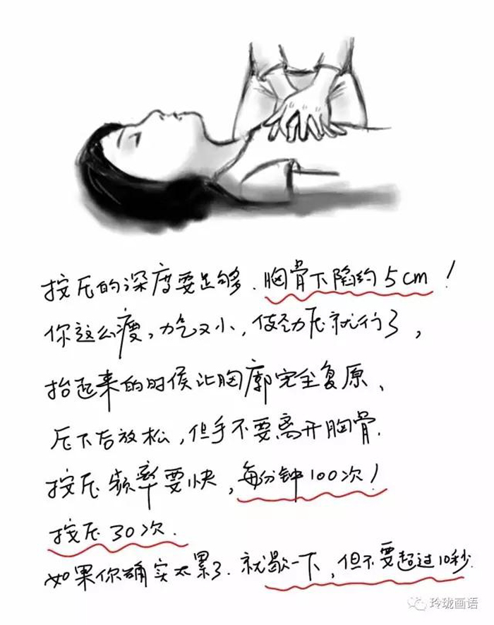 做胸外按压的时候,衣服要松,手臂要直,深度要够,频率要快;