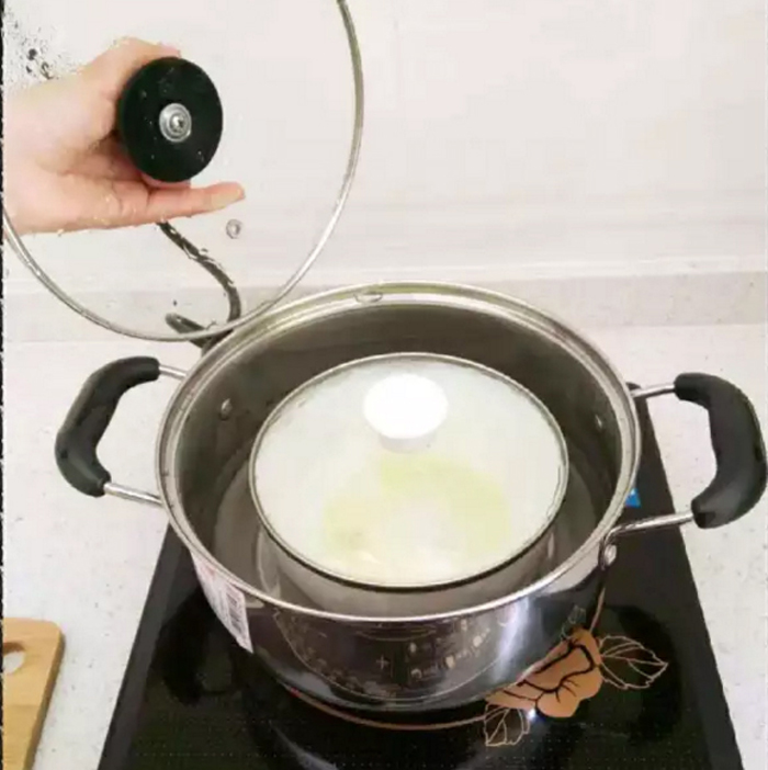 5、把盖子盖上,防止蒸的时候,锅盖上的水滴进去(如果用碗的话,用个小碟子扣上)(开蒸啦~)