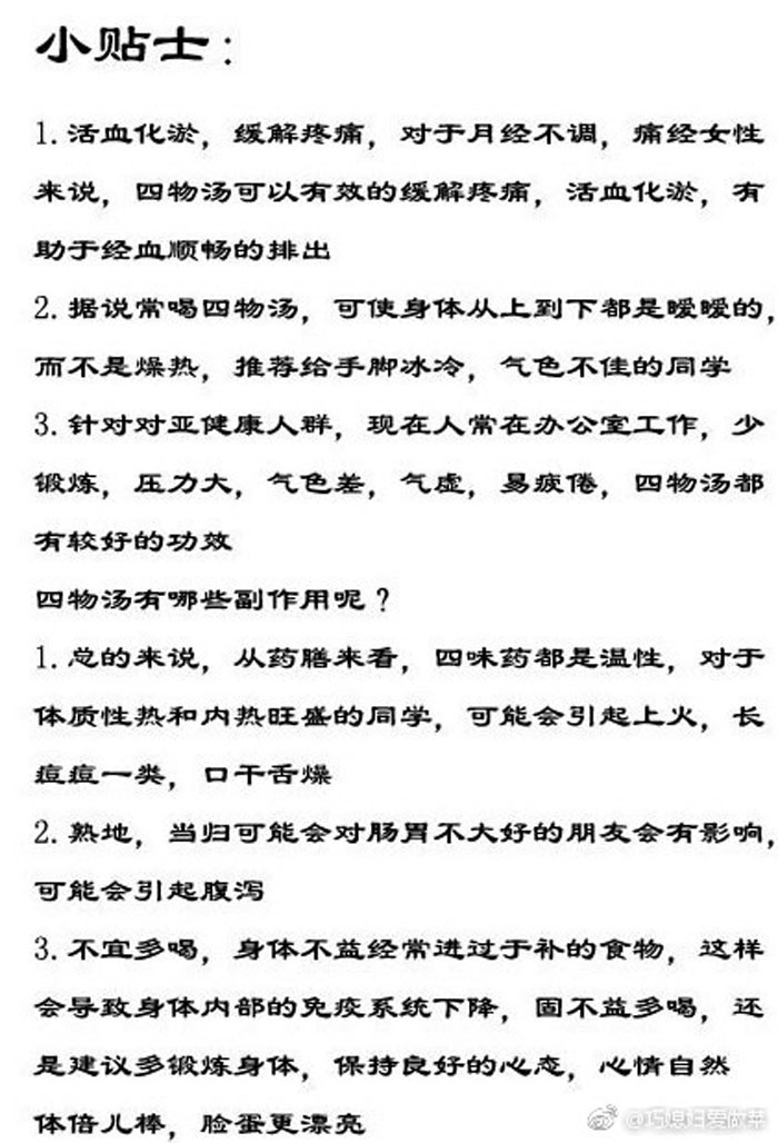 四物汤对于常有手脚冰冷、冬天怕冷夏天怕热问题很有效!可有助于气血通顺、不易手脚冰冷,并使脸色红润、肌肤光滑,看起来更为年轻,爱美女生看过来。