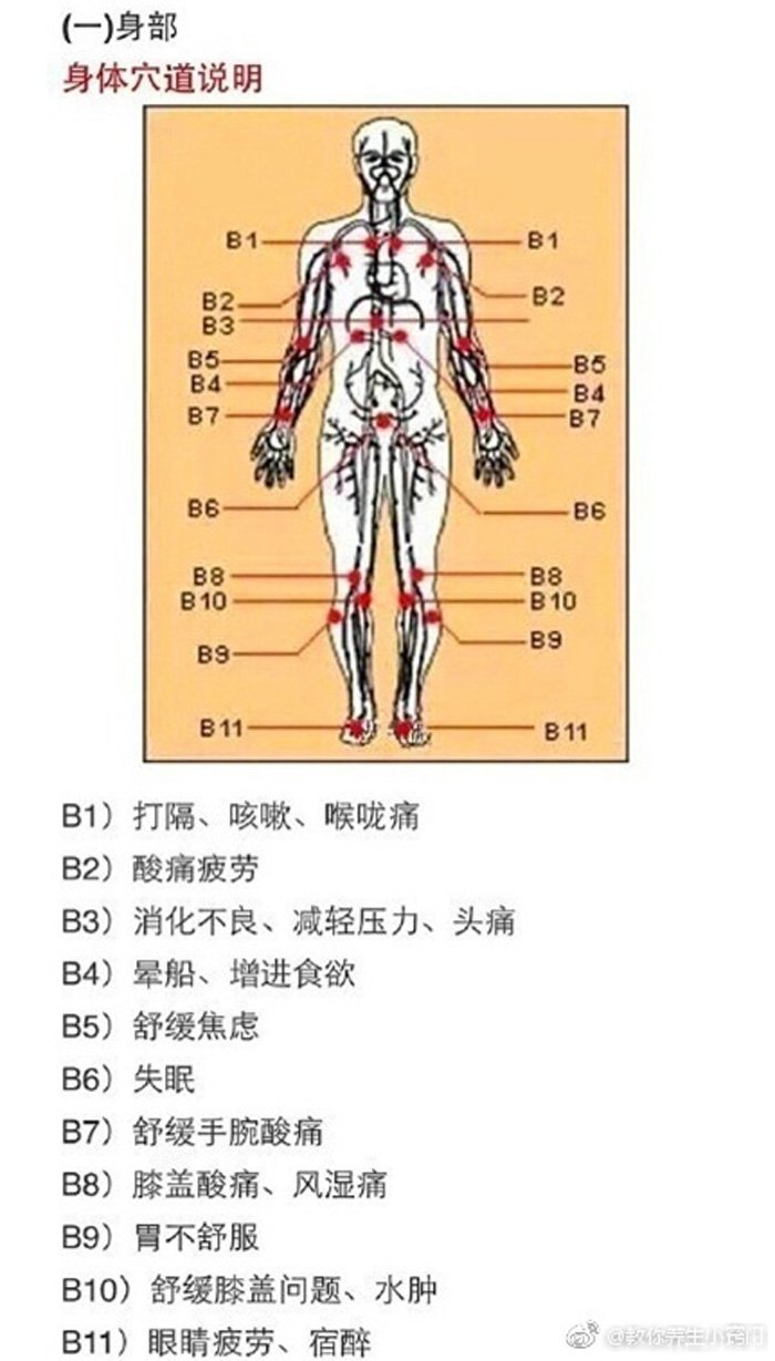最全人体穴道图 有空自己捏捏吧心肝脾肺肾都畅通了