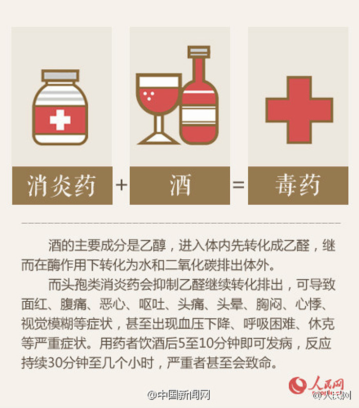 过节聚会一波接着一波。但你知道吗?吃着药,喝着酒,真要命!①感冒药+酒:肝脏衰竭风险;②头孢类抗生素+酒:严重将致命;③解热镇痛药+酒:可致消化道出血;④安眠药+酒:恐致命。