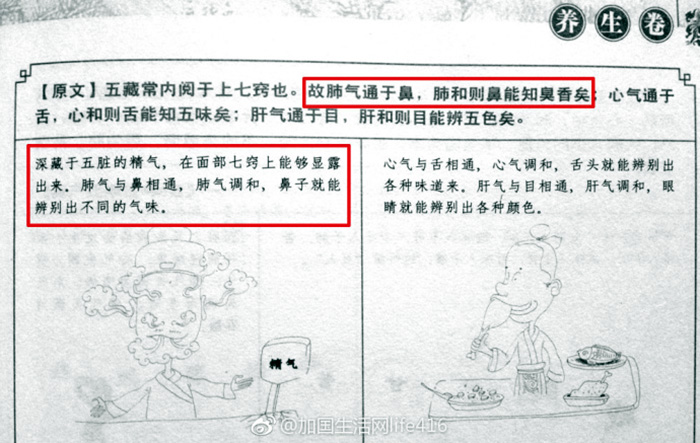 《黄帝内经》上说深藏于五脏的精气,在面部七窍上能够显露出来,肺开窍于鼻,肺气调和,鼻子的工作就正常,也就是说如果肺有问题,那鼻子也会相应有所反应的。我经常看有些得了鼻炎的人问使用哪种通鼻器好?或者使用哪种消炎药治疗鼻炎?治来治去还是年年犯鼻炎,那就是因为鼻炎的源头是在肺上、治标没治本啊。