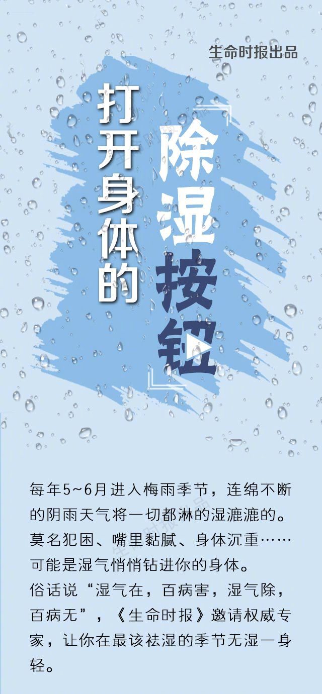 一到梅雨季,连绵不断的阴雨天将一切都淋的湿漉漉的。莫名犯困、嘴里黏腻、身体沉重……可能是湿气悄悄钻进你的身体。俗话说“湿气在,百病害,湿气除,百病无”,在最该祛湿的季节,权威专家支招让你无湿一身轻。