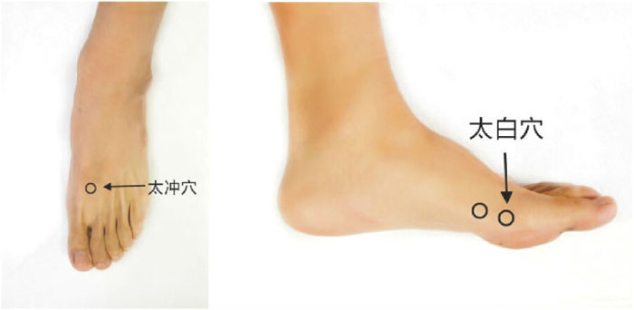 既然大暑是脾胃当令之时,特别推荐脾胃二经的原穴:太冲穴、太白穴。在大暑时节常按此穴可以培补土行的本源之气。