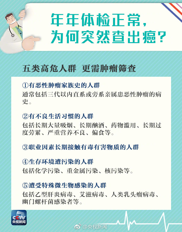 健康体检不等于癌症筛查,常规健康体检的侧重点主要在体格检查、心脑血管疾病、慢性肝病和糖尿病等方面。因此,有些人即使每年体检,也会被查出患上癌症。哪些人需要肿瘤筛查?又该选择哪些检查项目呢?