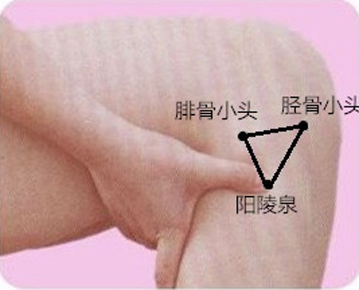 取最舒适的体位(坐位、仰卧位均可),用拇指按压在两侧阳陵泉上,其余四余并拢托住小腿肚按而揉之,协同向腓骨小头方向用力。
