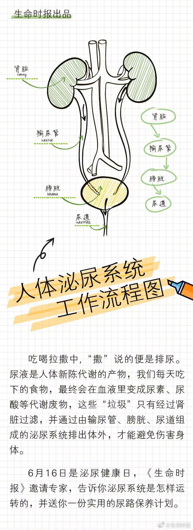 尿液是人体新陈代谢的产物,我们每天吃下的食物,最终会在血液里变成尿素、尿酸等代谢废物,它们要经过肾脏过滤,通过由输尿管、膀胱、尿道组成的泌尿系统排出体外。泌尿系统是怎样运转的?收好这份尿路保养计划。
