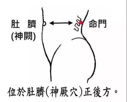艾灸方法:将艾条一端点燃,距离皮肤2~3cm,对准命门穴艾灸,局部有温热感即可,每次灸20分钟,每周1次
