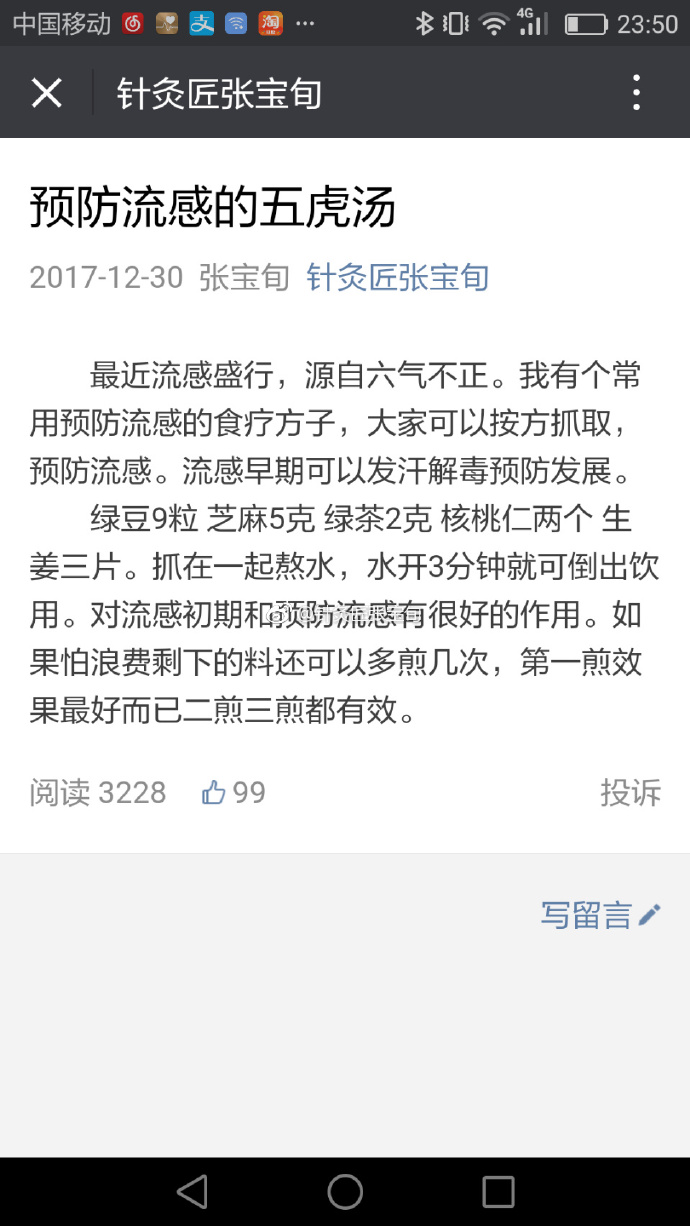 介绍一个对付流感食疗的小处方 可以试试