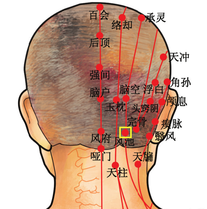 风池,在颈后枕骨下,大筋外侧凹陷处。有祛风解表的作用。