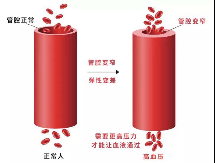 而高血压人群,他们由于先天遗传或者后天危险因素的影响,血管壁承受的压力值持续高于正常值。